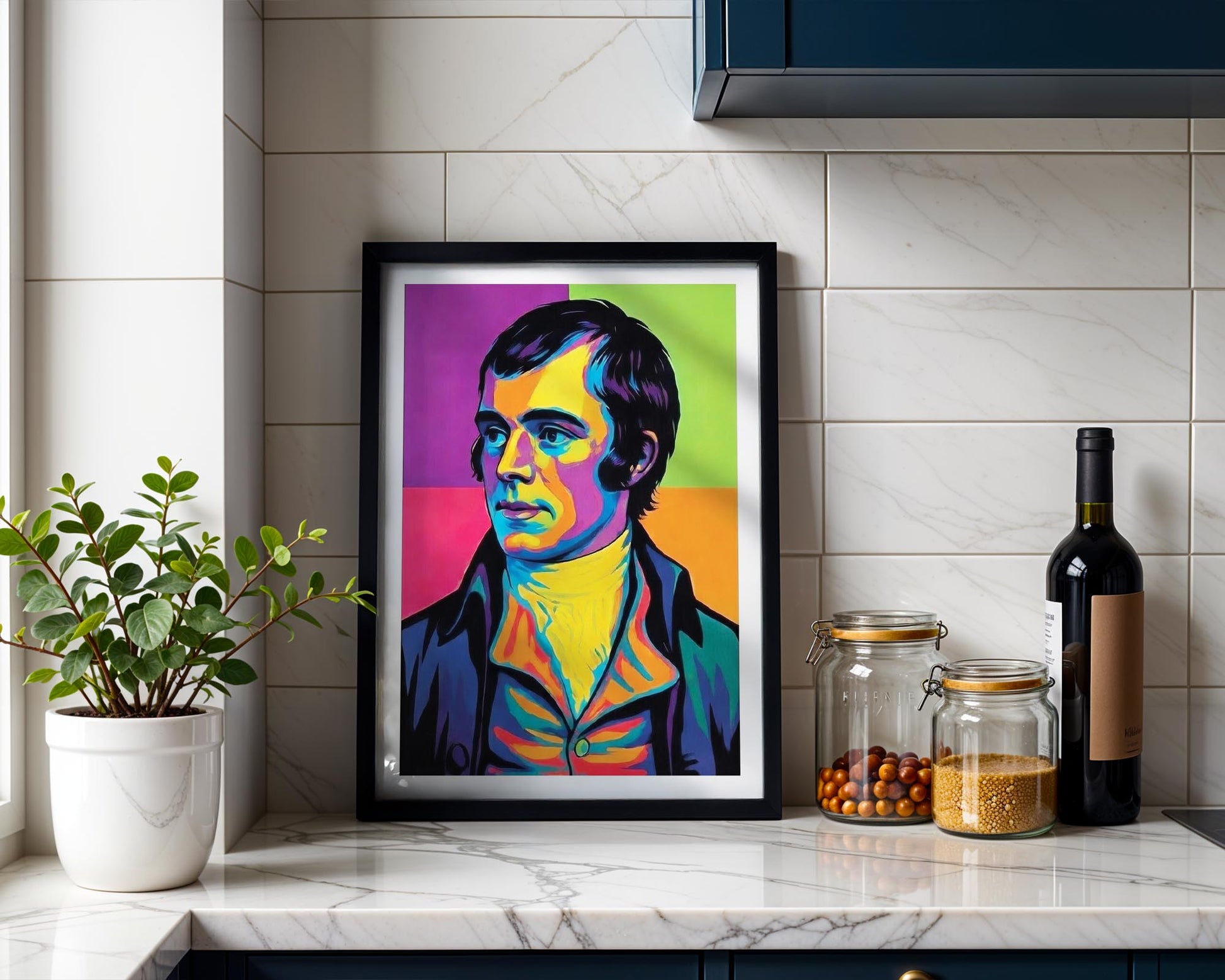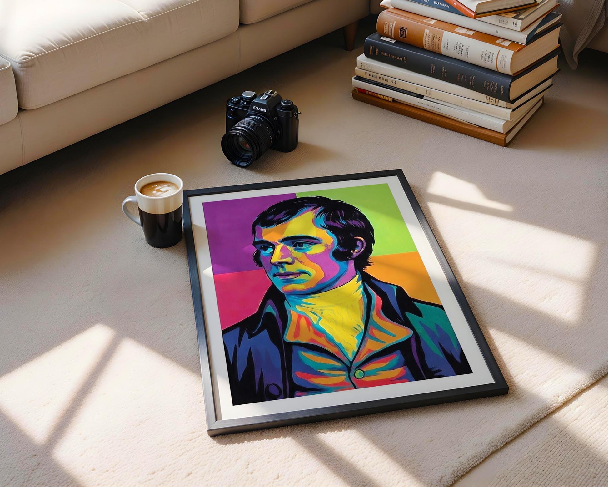 This vibrant, contemporary portrait brings Scotland’s national bard into the 21st century. Perfect for fans of Scottish heritage who want a bold, modern aesthetic, this print reimagines Robert Burns through a lens of high-energy pop art.